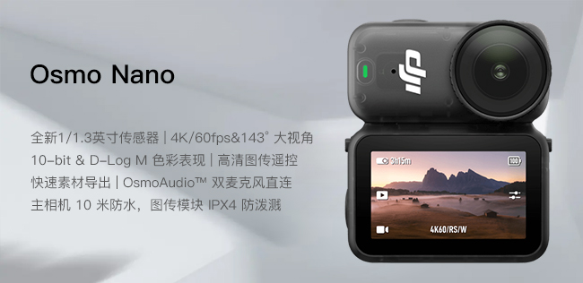 1 英寸 CMOS & 4K 120fps | 2 英寸旋轉屏 & 智能橫豎拍 | 三軸云臺機械增穩 | 智能跟隨 6 0 | 全像素疾速對焦 | D-Log M & 10-Bit